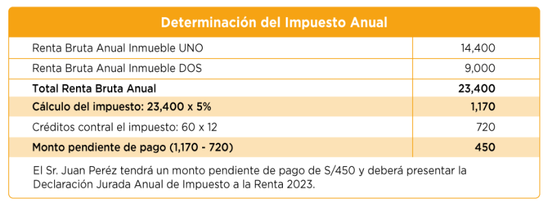 El Sr. Juan Pérez es propietario de 2 inmuebles y desea saber ¿Cómo realiza sus pagos mensuales y si debe presentar la Declaración Jurada Anual del Impuesto a la Renta?