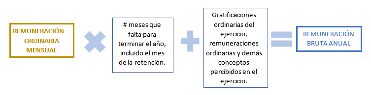 | Paso 1 | La remuneración mensual puesta a disposición del trabajador, se multiplica por el número de meses que falte para terminar el ejercicio, incluyendo el mes al que corresponde la retención. A dicho resultado se le suma las gratificaciones ordinarias, las remuneraciones y demás conceptos que se hubieran puesto a disposición del trabajador en los meses anteriores del mismo ejercicio. |