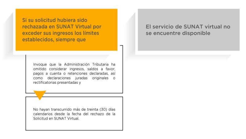 Sin embargo, el contribuyente excepcionalmente podrá solicitar la suspensión en las dependencias de la SUNAT a nivel nacional o en los Centros de Servicios al Contribuyente, según corresponda, hasta el último día hábil del mes de diciembre, cuando se presenten alguno de los siguientes supuestos: